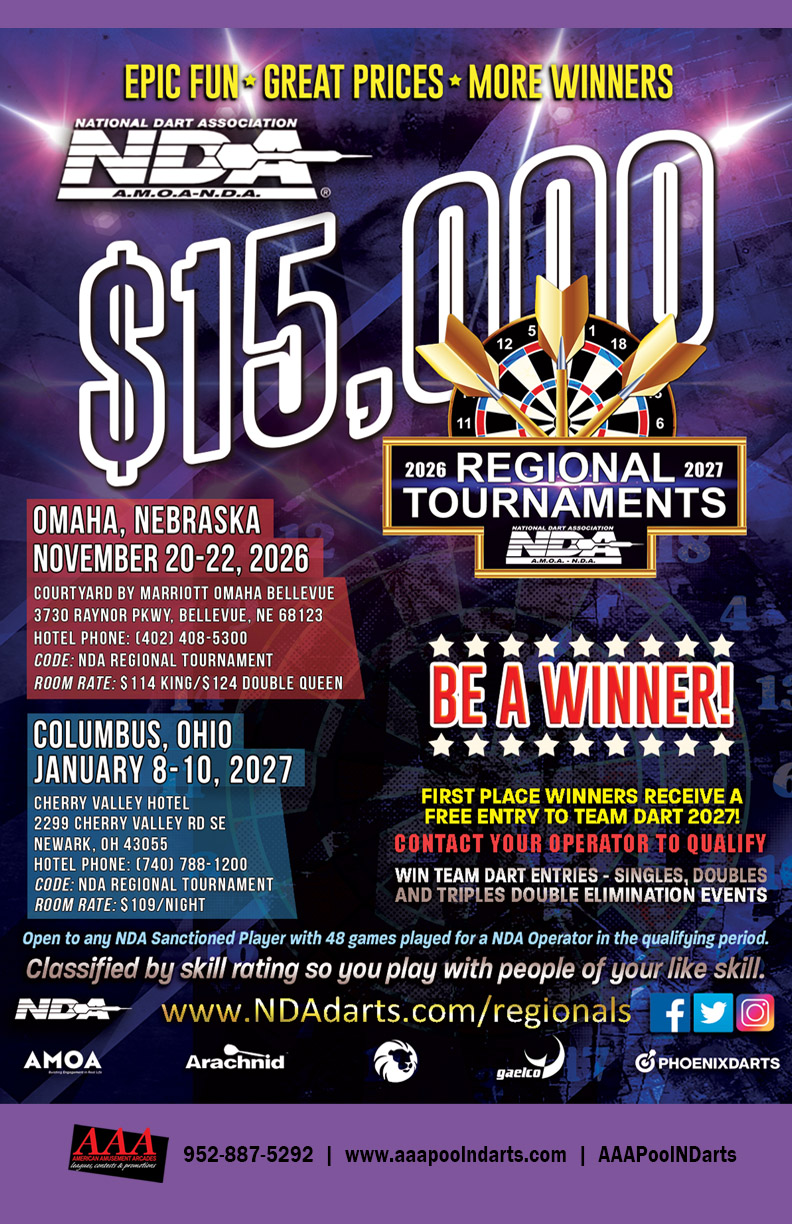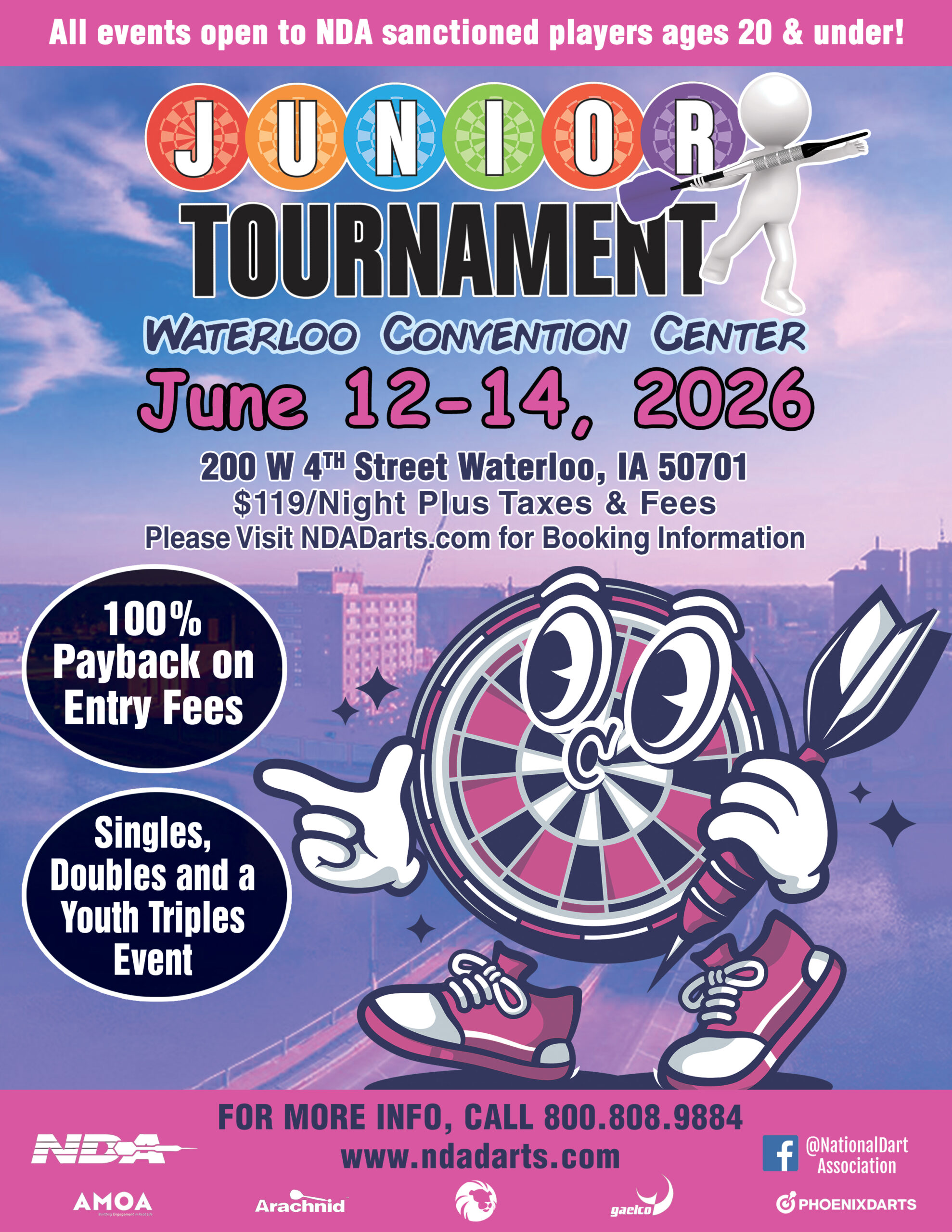 Our dart leagues will also qualify players to compete in the annual NDA tournaments (Team Dart for adults and NDA Juniors for youth players), Bullshooter tournament, MOMA tournament, MSPDA tournament, WAMO tournament, and D&R Star yearend tournament.